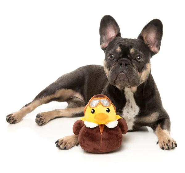 Prepare for takeoff with the legendary, Amelia Quackhart! Donning her best aviator gear, complete with a snazzy collared jacket and goggles, Amelia Quackhart is ready to lead your canine companion on sky-high adventures. She’s the pawfect co-pilot to get those propellers and tails spinning. What’re you waiting for? It’s time to take to the skies (or just the living room) and fetch your own Amelia Quackhart today!